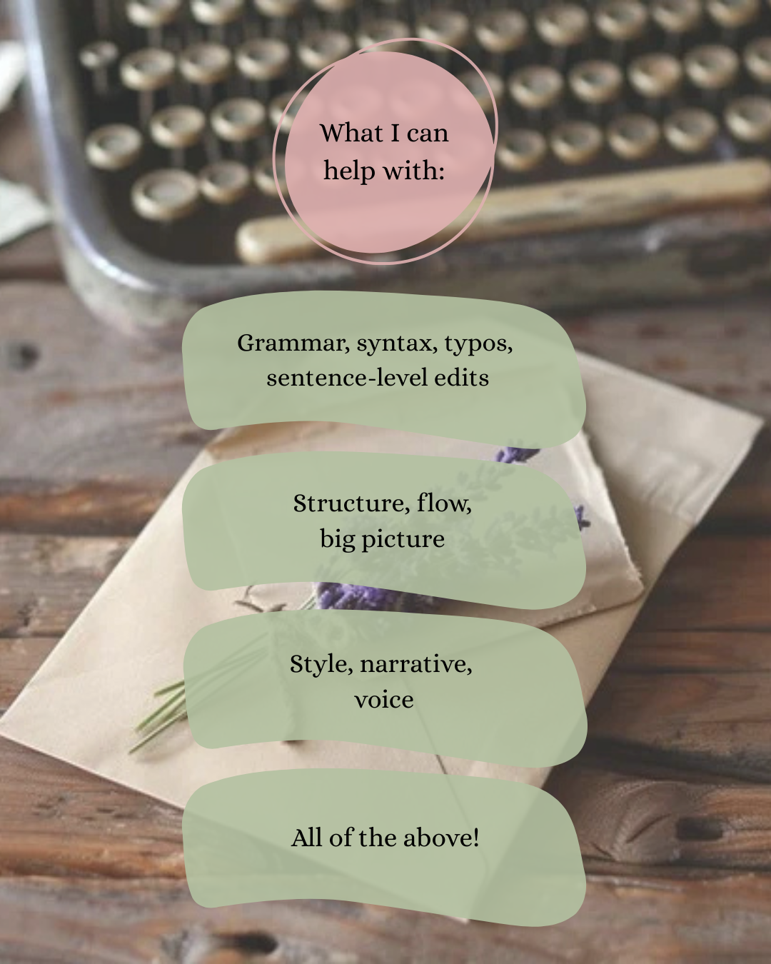 I offer comprehensive and detailed copyediting services tailored to each client’s specific needs and goals: